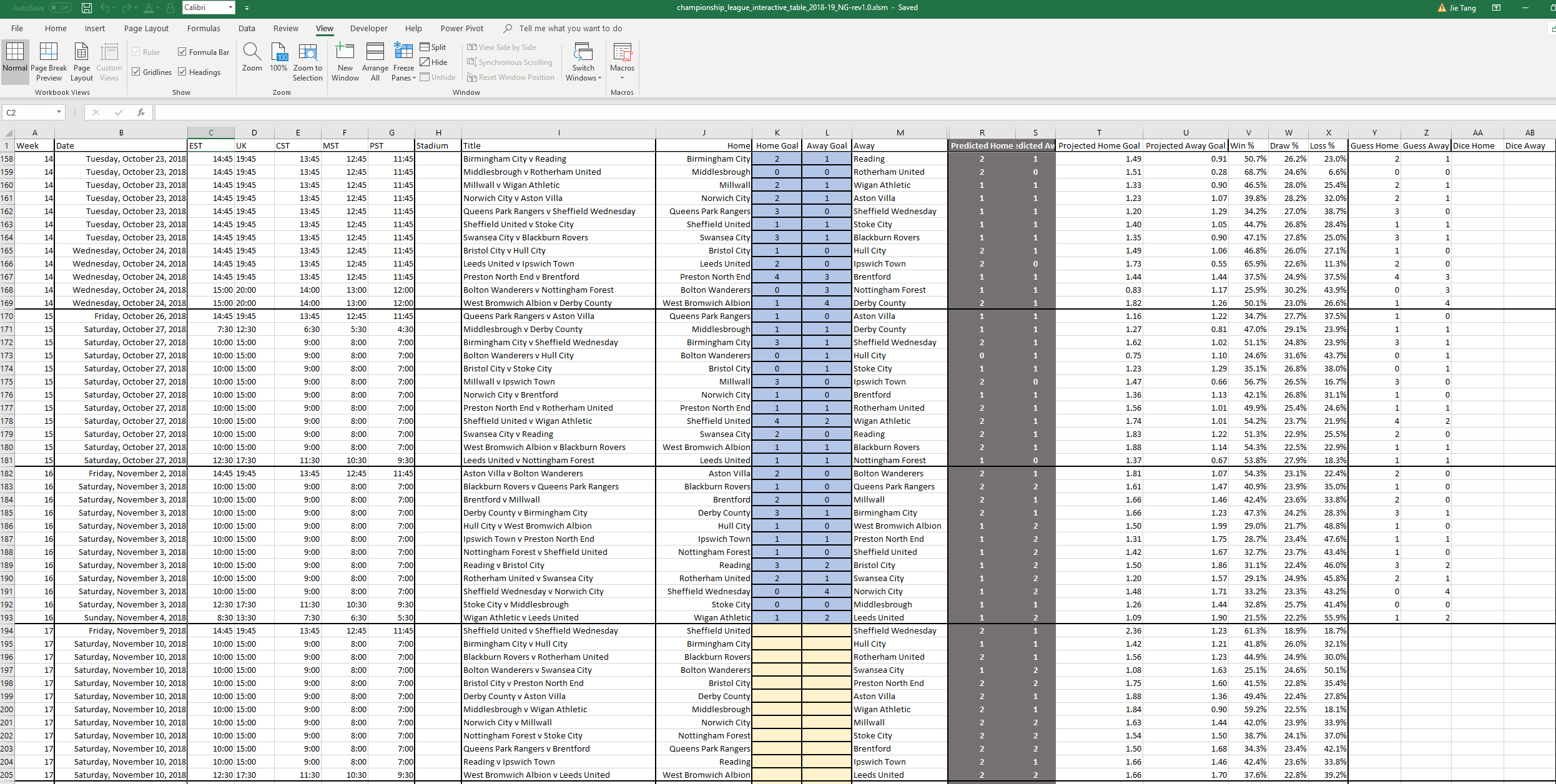 Interactive 2018 19 Efl Championship League Table In Excel