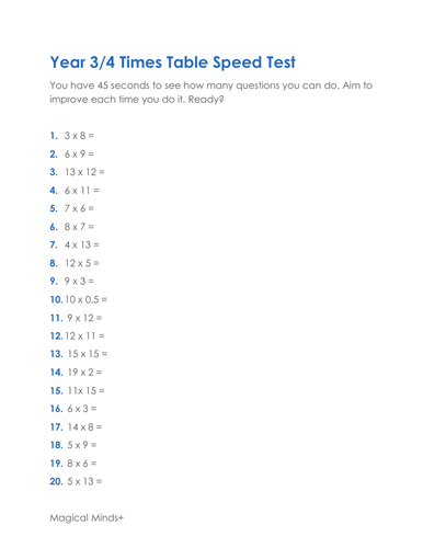 Times Tables Speed Test Tmk Education